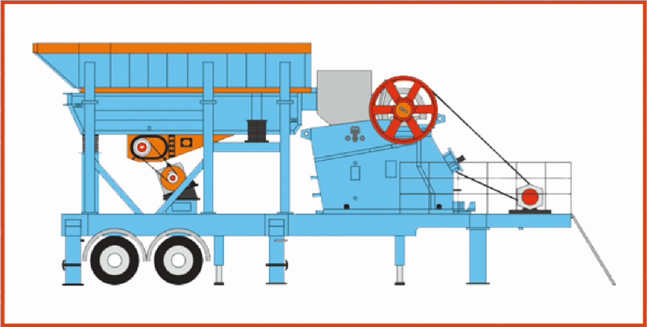 轮胎式系列移动破碎站,提供了简捷、低成本的特色组合机组配置,针对粗碎、细碎筛分系统,可以单机组全攻略独立作业,也可以灵活组成系统配置机组联合作业。料斗侧出为筛分物料输送方式提供了多样配置的灵活性,一体化机组配置中的柴油发电机除给本机组供电外,还可以针对性的给流程系统配置机组联合供电。